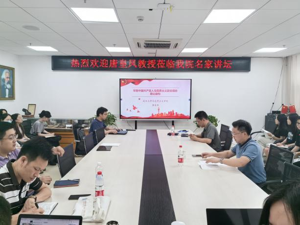 (通讯员:耿学栋)6月11日,武汉大学马克思主义学院副院长唐皇凤教授应邀莅临我院“名家讲坛”,做题为“早期中国共产党人马克思主义政党观的理论建构”的讲座。我院副院长李海金教授主持,我院师生共计四十余人参加讲座。