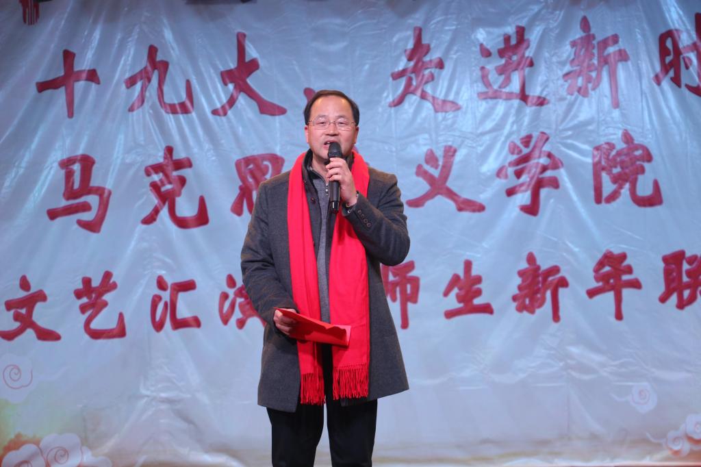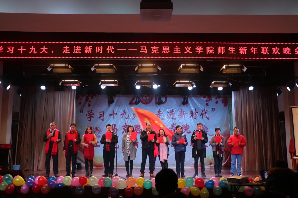 12月29日晚七点,我院2018年教职工文艺汇演暨师生新年联欢晚会在东区老年人活动中心隆重举行。校党委书记何光彩、马克思主义学院院长高翔莲、党委书记侯志军,以及全体教职工和学生到场参加。本次晚会以“学习十九大,走进新时代”为主题,庆祝党的十九大顺利召开,迎接2018新时期的到来。