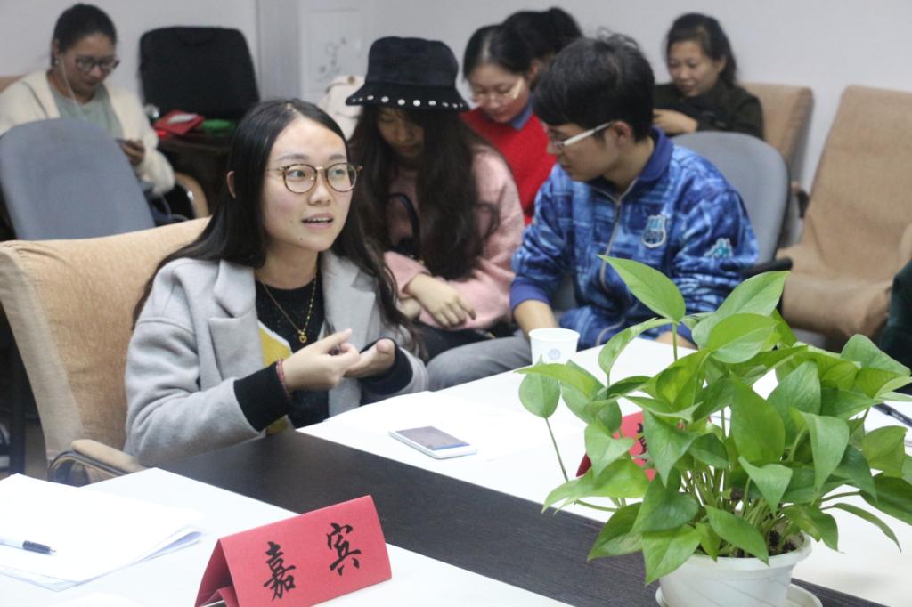 首先,杨静同学作了题为“研究生如何做学术研究”的报告。其内容主要包括六个方面:研究生学什么、师徒制、研究要领、看文献的要点、论文研读要领以及创新思维。杨静同学现身说法通过讲述自己三年研究生生活和学习经验,给在座的同学传授做学术的经验和方法。其中在谈到研究生学什么的时候,杨静同学通过将本科生与研究生做对比展现出本科生与研究生的学习方法、思维想法及生活习惯的不同之处,同时又结合自身的学习生活做出精彩的分析,提出自我表达的重要性。另外,杨静同学就如何与老师相处,向老师寻求帮助以及如何搜集查找文献、阅读文献提出了许多独到的见解。最后杨静同学以一段非常简单而又有趣的心理趣味文字结束她的报告,赢得了同学们的掌声。担任本场嘉宾的卢微同学就杨静的个人性格、学习习惯以及学术成就进行了精彩的点评。