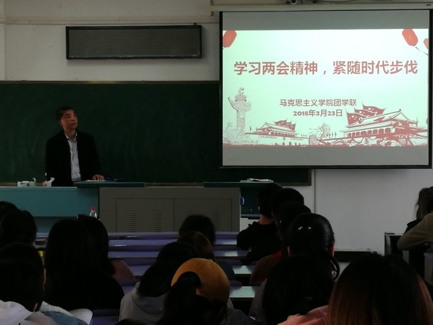为学习两会精神,提高广大青年团员的政治素养,马克思主义学院于3月23日下午4点在教三楼401室召开题为“学习两会精神,紧跟时代步伐”的大型团组织生活会。马克思主义学院思想政治教育系党支部书记何英老师、院团委书记王艳波老师以及全体本科生到场参加。