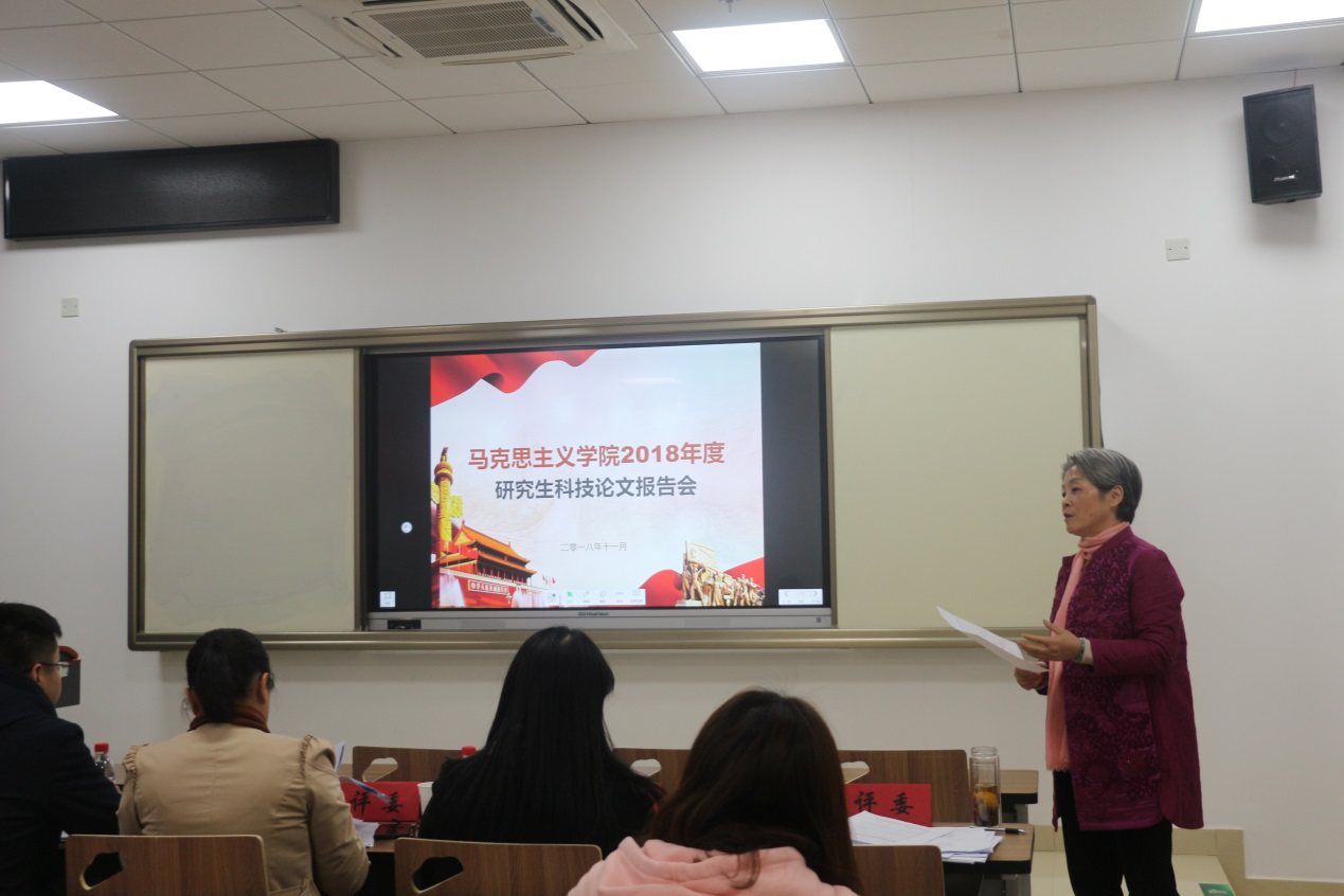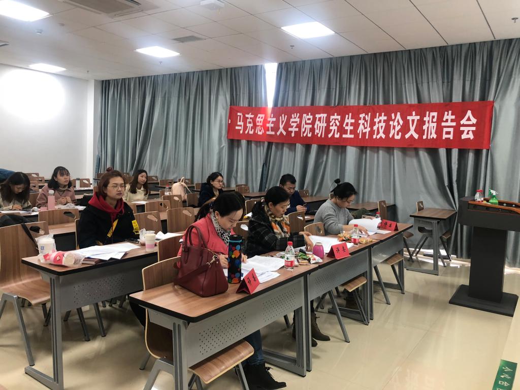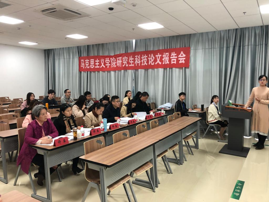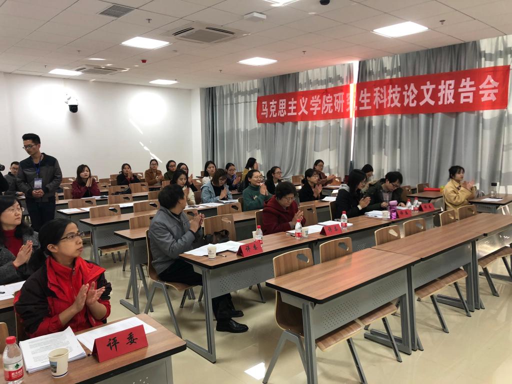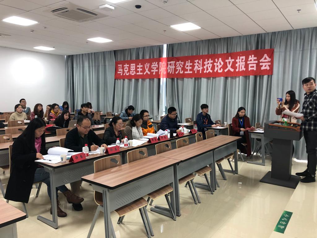 2018年11月8日,马克思主义学院第九届研究生科技论文报告会在东区教学综合楼举行。学院领导、研究生导师和专业教师等近30位老师应邀担任评委,共计67名研究生分四个会场进行报告。
