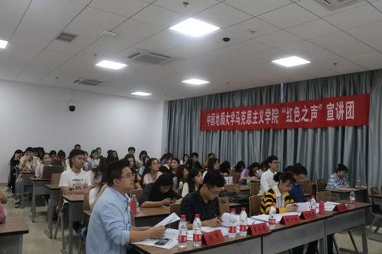 2019年5月30号下午16:00,马克思主义学院于东教A106(主会场)、A108(分会场)召开主题团日暨第九期“红色之声”结题答辩会。