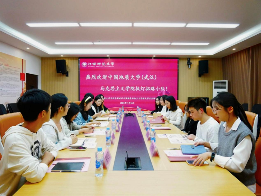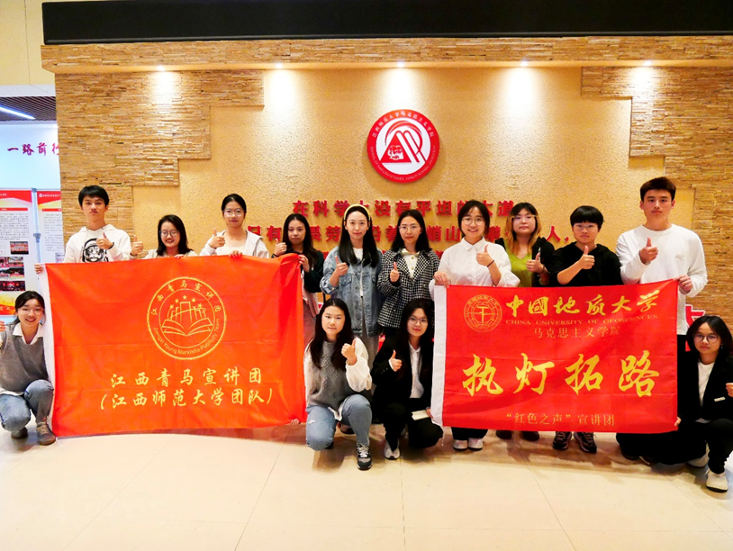 宣讲活动结束后,宣讲团还来到了江西师范大学马克思主义学院与其宣讲团骨干成员进行了参观与交流,江西师范大学马克思主义学院作为全国重点马院为我校“红色之声”宣讲团建设提供了许多非常宝贵的意见,切切实实的学到了很多有关机制建设以及内容创新的经验。