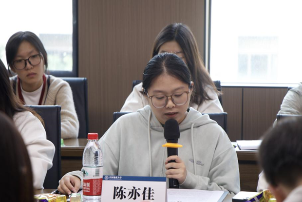 在活动中,华师马院青协雷舒涵与中国地质大学(武汉)马克思主义学院本科生主席团成员陈亦佳介绍组织概况和工作内容。