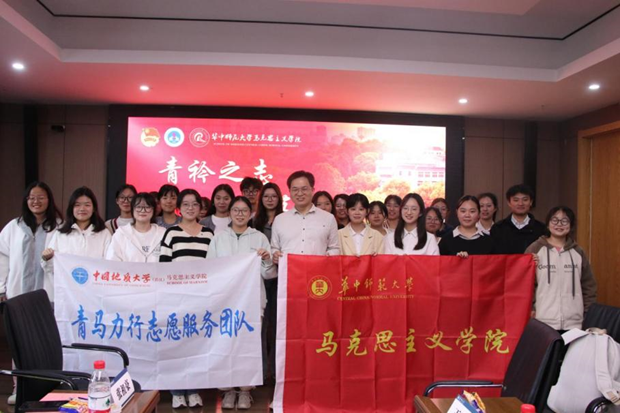 10月27号14:00-17:00,中国地质大学(武汉)马克思主义学院青马力行志愿服务团队(以下简称“地大马院青协”)与华中师范大学马克思主义学院青年志愿者协会(以下简称“华师马院青协”)在华中师范大学新文科科研楼407会议室开展高校互访活动。活动由华中师范大学马克思主义学院第二团委副书记雷舒涵主持。