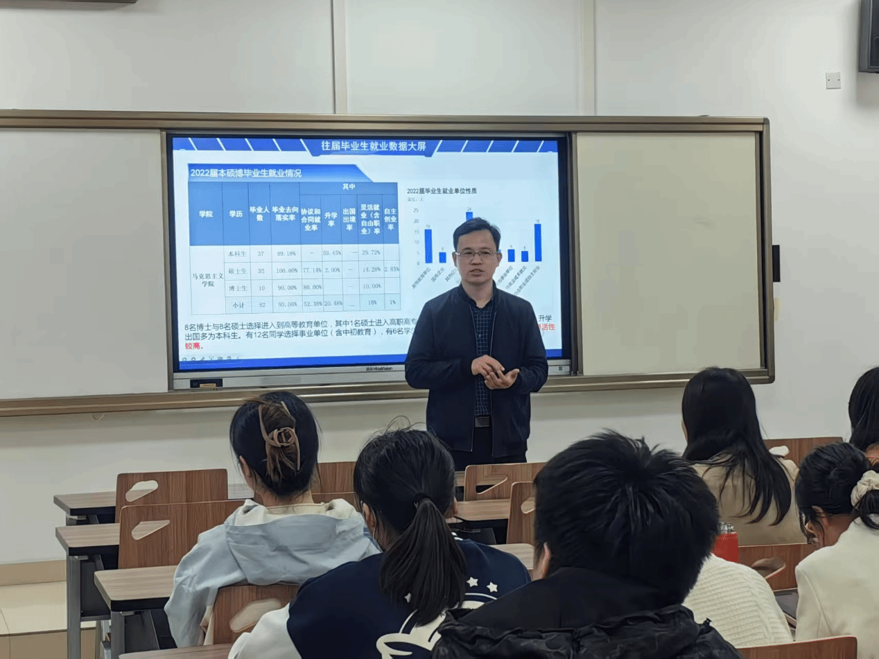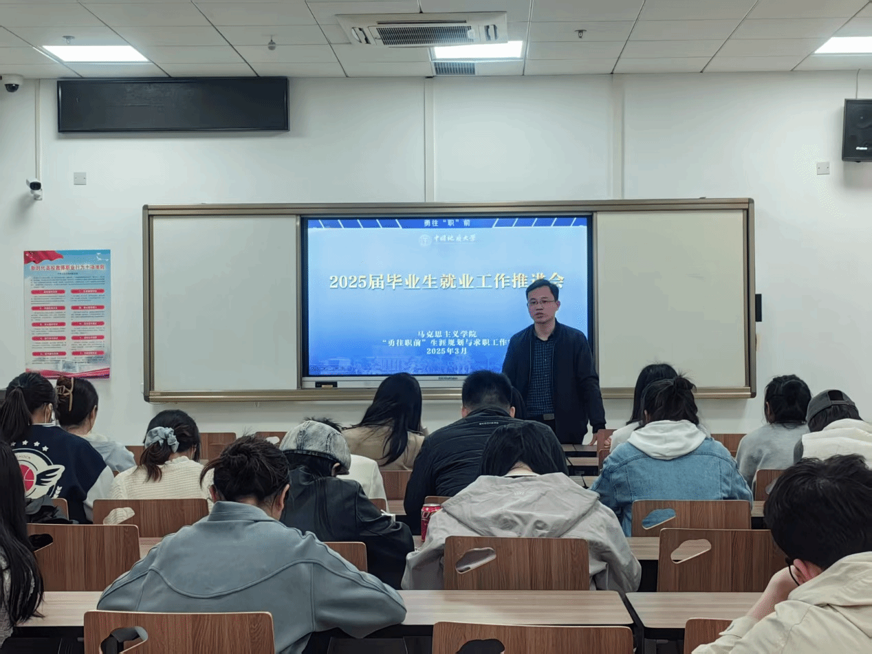 为深入贯彻落实学校就业工作部署,切实推进毕业生就业工作,2025年3月27日下午,马克思主义学院“勇往职前”生涯规划与求职工作室于东教楼B106召开2025届毕业生就业推进会。学院党委副书记武彦斌、毕业班辅导员姚晟,全体本科、硕士、博士毕业生参加了本次会议。