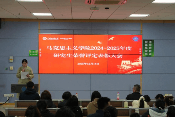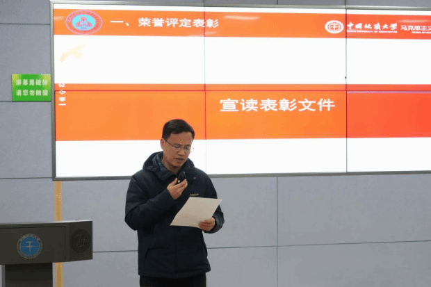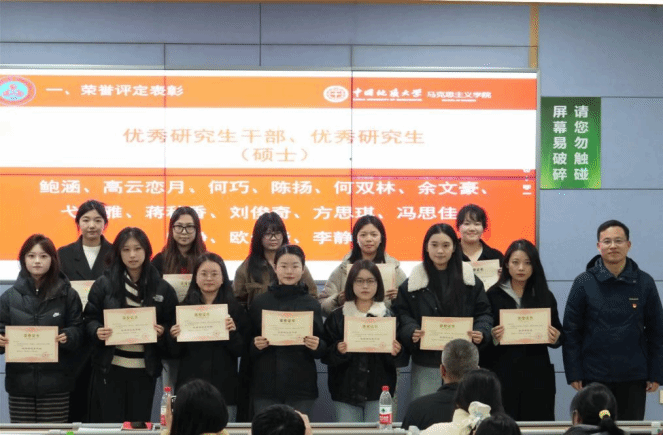 武彦斌宣读《中国地质大学(武汉)马克思主义学院关于2024-2025年度研究生荣誉评定表彰的决定》,学院共表彰优秀个人20余名。