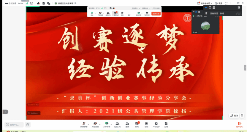 为激发学生创新创业热情,提升项目设计与实践能力,12月21日晚,我院联合公共管理学院、外国语学院共同举办“求真杯”创新大赛线上经验分享会,来自马克思主义学院和公共管理学院的三位优秀学子受邀担任主讲嘉宾,围绕赛事核心环节分享实战经验,为有意向参赛的同学搭建起高效学习交流的优质平台。