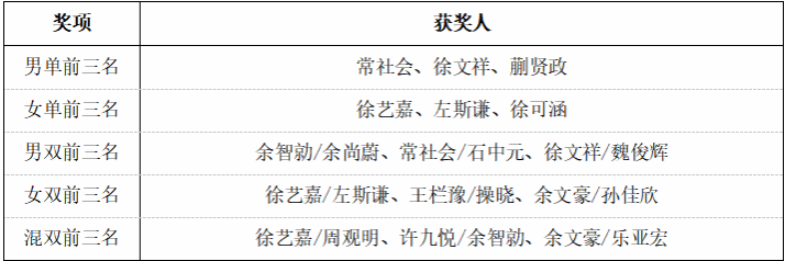 经过半天的激烈角逐,各单项赛事冠亚季军相继产生。