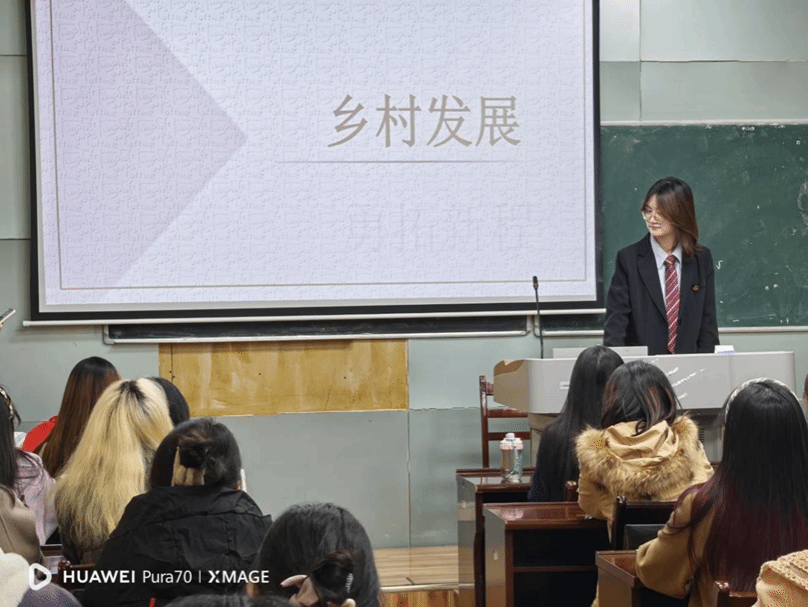 接着,胡茂诚同学向大家讲述“敢闯新路”精神    现实意义和深刻启示。并从乡村发展、科技创新、文化传承三个方面入手,通过遵义花茂村、华为公司、天水市文旅三个实例,展示了“敢闯新路”精神的  在科技领域的  生命活力。