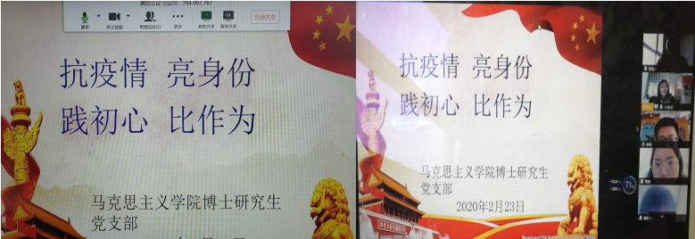 2月23日,马克思主义学院博士生党支部通过腾讯会议的形式召开线上主题党日。本次主题党日活动以“抗疫情 亮身份 践初心 比作为”为主题。