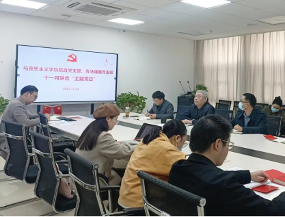 2022年11月24日下午,马克思主义学院院直党支部与青马强国党支部在东区教学综合楼B1013室联合展开了主题为“学习宣传贯彻落实党的二十大精神”的党日活动。会议由院直党支部姚晟老师主持。