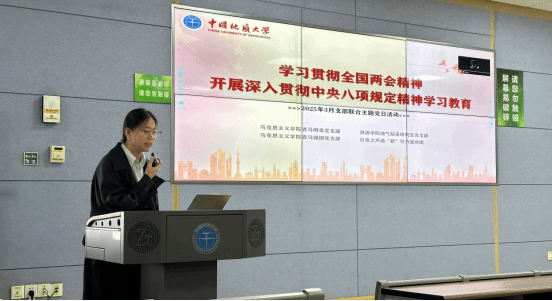 会议主要内容为学习习近平总书记重要讲话精神和2025全国两会精神、学习全省教育大会精神、深入贯彻中央八项规定精神学习教育,会议由马克思主义学院青马明责党支部书记侯玲玲主持,本次会议还邀请到马克思主义学院递“薪”引力宣讲团围绕“科学家精神教育”进行专题领学。