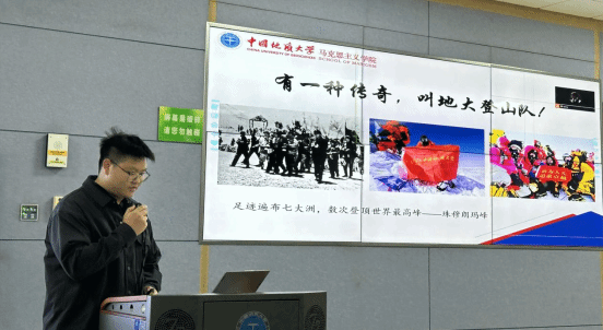 马克思主义学院红色之声递“薪”引力宣讲团张少龙同志通过讲述王富洲校友与队友们为国协同攀登珠峰的故事,让党员同志们深刻体会到科学家精神中蕴含的协同创新、敢于攀登的理念。中国地质大学登山队的攀登精神激励着党员们勇攀科研高峰,不断探索未知领域。