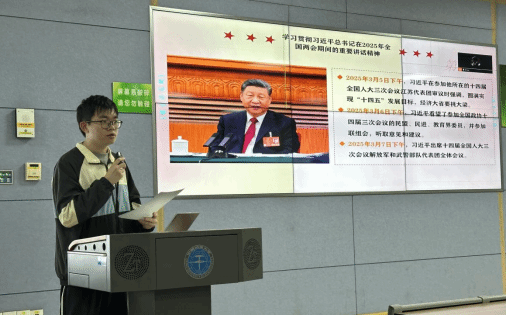 图 3 马克思主义学院青马明责党支部简垒锋同志领学“习近平总书记重要讲话精神和2025全国两会精神”