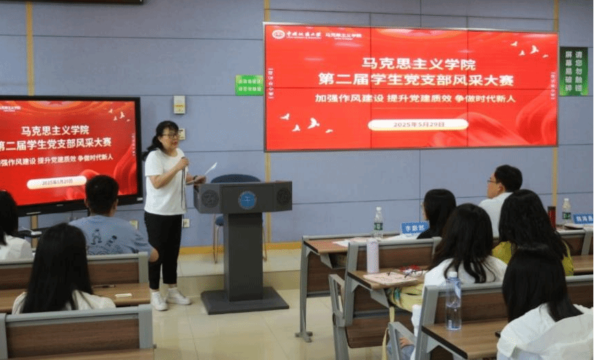 为深入学习贯彻习近平新时代中国特色社会主义思想,推动深入贯彻中央八项规定精神学习教育走深走实,进一步提升学生党支部建设质效,5月30日,马克思主义学院在东综C109举办第二届学生党支部风采大赛。校级专职组织员于荣萍,学院党委书记魏海勇,副书记武彦斌,教工党支部书记李蔚然、曹阳,团委书记姚晟出席并担任评委,大赛由党建办骨干弋馨雅、方思琪主持。