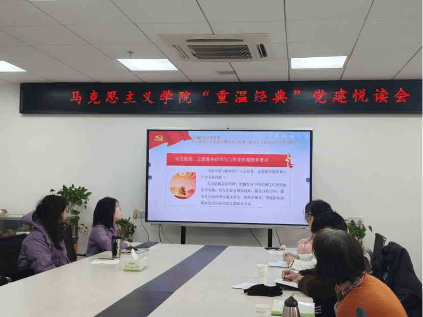 在集中学习环节,青马明德党支部彭琦同志带领全体党员深入学习习近平致中国志愿服务联合会第三届会员代表大会的贺信精神。大家深刻认识到,志愿服务是社会文明进步的重要标志,是投身中国式现代化建设的生动实践,党员积极参与志愿服务,也是在奉献社会中践行使命。
