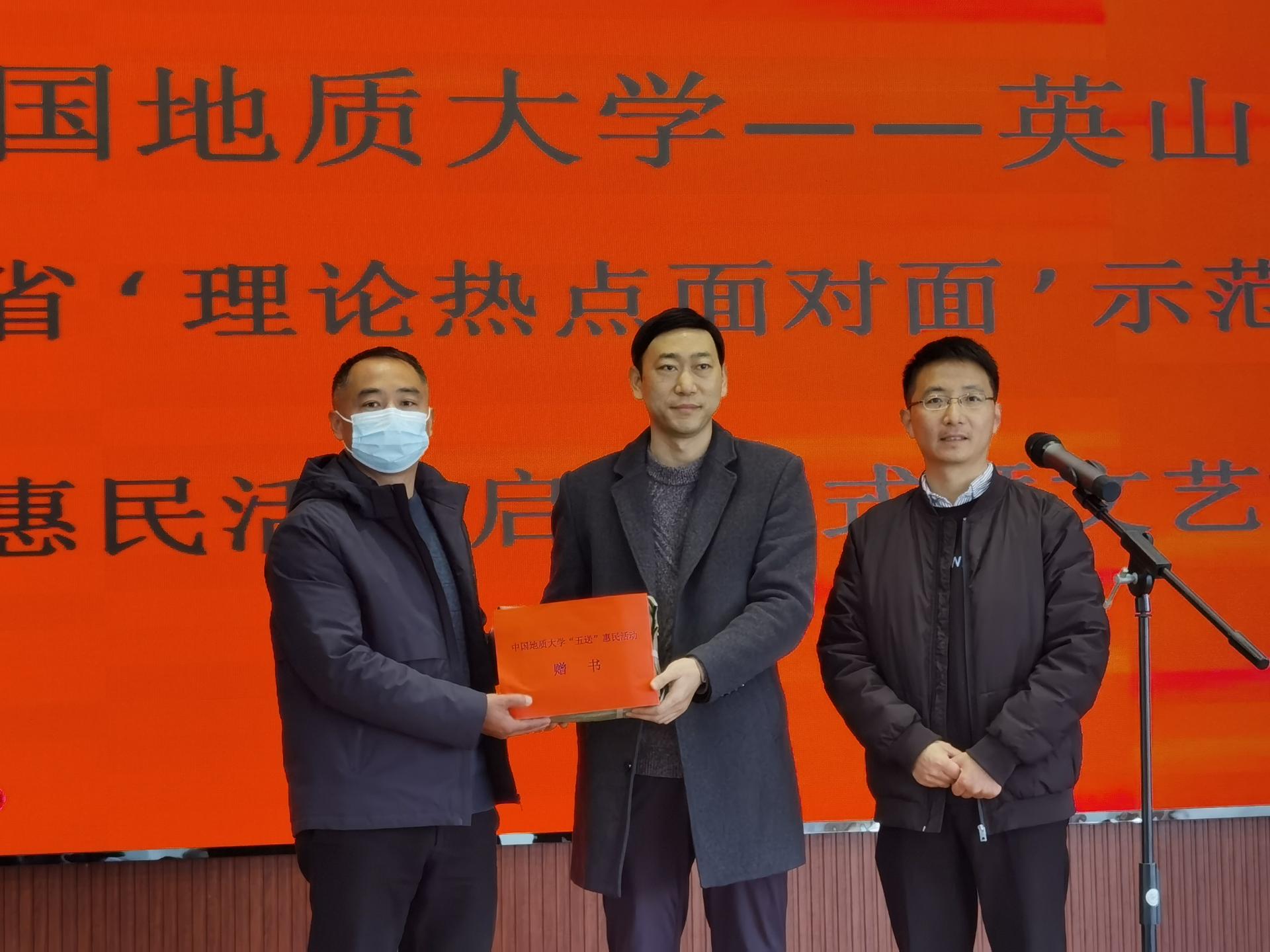 地大新闻网讯(通讯员曹阳 张东凯 摄影赵平 胡雪黎)为深入贯彻落实党的十九届六中全会精神,结合党史学习教育“我为群众办实事”实践活动,12月3日,我校赴湖北省“理论热点面对面”示范点英山县,开展送理论、送法律、送技术、送文化、送致富信息“五送”惠民活动。