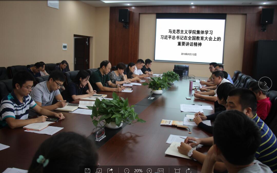 913日下午,马克思主义学院组织教师集体学习习近平总书记在全国教育大会上的重要讲话精神。院长高翔莲、院党委书记刘世勇、副院长张存国、阮一帆及本学期讲授《思想道德修养与法律基础》课的全体教师参加学习。刘世勇领学了习近平总书记讲话主要内容,要求教师们牢牢把握教育改革发展的“九个坚持”,在教学过程中,紧紧围绕培养什么人、怎样培养人、为谁培养人这一根本问题,坚持立德树人根本任务,通过课程贯彻落实习近平总书记重要讲话精神,坚定学生的理想信念、厚植爱国主义情怀、加强品德修养、增长知识见识、培养奋斗精神、增强综合素质,为培养德智体美劳全面发展的社会主义建设者和接班人不懈努力。
