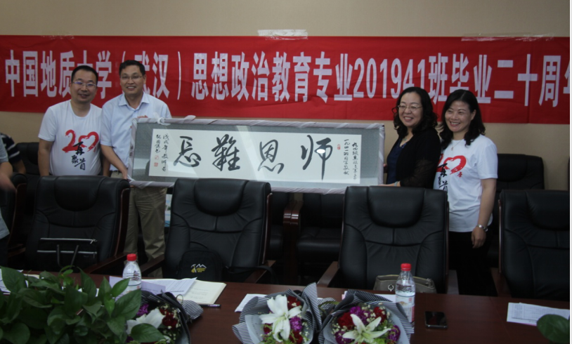 会议开始前,校友代表向老师献上美丽的鲜花,表达对老师的感谢和敬意。刘世勇首先致欢迎词并介绍了学校发展近况和学院近几年取得的突出成绩。班主任张存国和辅导员张建和与大家共同回忆了大学快乐的学习和生活趣事,会议室不时传出欢快的笑声和热烈的掌声。接着校友们简要介绍了自己大学毕业后的发展和现状。高翔莲总结讲话,对校友们返校欢聚再次表示热烈的欢迎,校友们在工作中充分发扬了地大“艰苦朴素,求真务实”的校训精神,对校友们取得的优秀成绩和为实现“中国梦”做出的积极贡献表示衷心的祝贺,她表示母校是校友们坚强的后盾和精神的港湾,在事业发展过程中需要母校支持的,学院一定会竭尽全力给予支持,并希望校友们常“回家”看看!最后,两位班长代表全班校友向母校赠送了纪念品。