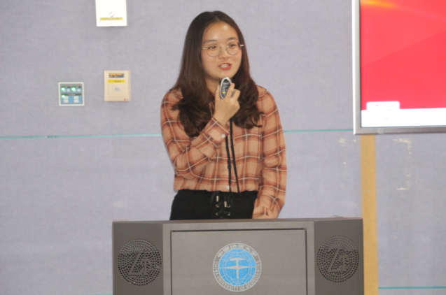 高年级学生代表姚乃文和新生代表陈子怡发言。姚乃文同学从自身实际经历出发,用“雄关漫道真如铁,而今迈步从头越” “苟利国家生死以,岂因祸福避趋之”“千磨万击还坚劲,任尔东西南北风”总结大学生活。陈子怡同学引用习总书记的谆谆教诲,号召同学们不负韶光,以青春书写时代荣光,用地大之锤,凿出生命之光。