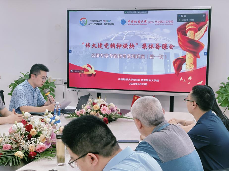 6月29日下午,中国地质大学“红绿蓝”大中小学思政课一体化共同体“伟大建党精神模块”集体备课会在南望山校区东区教学综合楼B1013会议室举行。学院党委书记汪再奇、院长阮一帆、共同体成员单位领导及全体思政课教师与会。武汉工商学院等成员单位设置了分会场。学院副院长孙文沛主持会议。