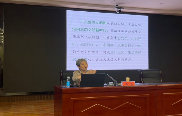 黄娟教授在英山县生态环境局进行《习近平生态文明思想的世界观和方法论》专题宣讲,结合英山县生态文明建设工作实际,对习近平生态文明思想的主要内容、生态文明建设的重要价值以及推进生态文明建设的重点任务、世界观与方法论进行了重点解读。