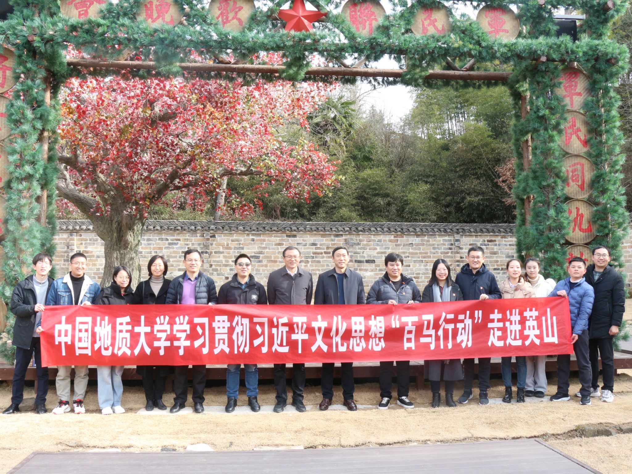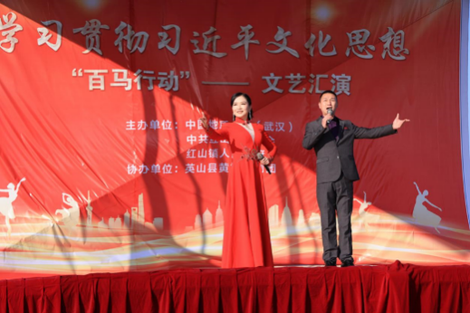 (通讯员:肖苏阳、姚晟、刘腾龙、何晓龙、钟绍斌、游晨楠、耿学栋)为深入学习宣传贯彻习近平文化思想,全面贯彻落实全国和全省宣传思想文化工作会议精神,2024年1月4日至5日,我校“百马行动”宣讲队赴湖北省英山县,开展学习贯彻习近平文化思想系列活动。中国地质大学(武汉)原副校长、马克思主义学院教授傅安洲,校党委宣传部部长侯志军,马克思主义学院院党委书记汪再奇、院长阮一帆、二级教授韩美群、党委副书记武彦斌、副院长李海金,艺术与传媒学院院长何清俊、副教授徐佳,我校党委宣传部、马克思主义学院、艺术与传媒学院相关教师和研究生本科生38人,英山县委副书记、县长王海霞,英山县委常委、宣传部部长童壁,英山县乡镇、县直单位相关负责人,红山镇党委书记叶晓华,红山镇党委副书记、镇长王超及相关干部党员群众代表参加活动。