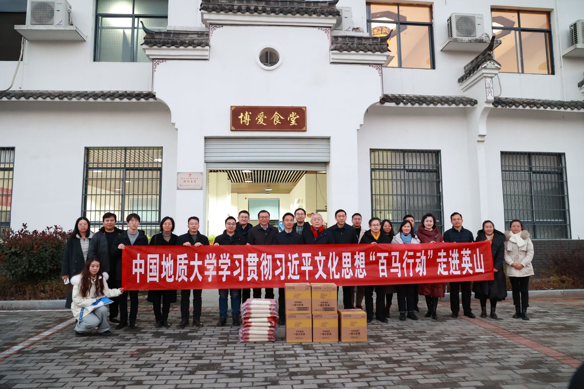 中国地质大学(武汉)在乌云山村博爱食堂举行捐赠物资仪式。